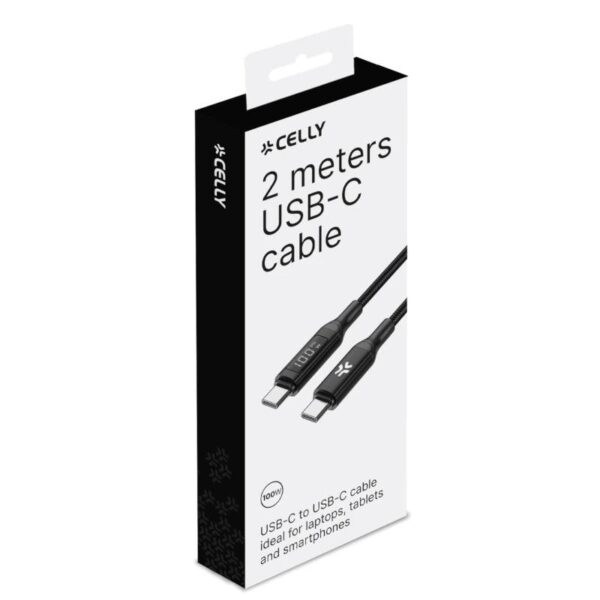Celly Cable UsbC-UsbC2 2Mt Led BK 100w