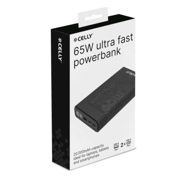 – Batería: 20000 mAh – Número de puertos USB: 3 – Tipo de conector 1 entrada: USB-C – Tipo de conector 1: USB-A – Tipo de conector 2: USB-C – Tipo de conector 3: USB-C – Tipo de conector de salida: 1 x USB-A + 1 x USB-C – Voltaje de entrada: 20 V – Amperaje de entrada: 3,25 A – Voltaje de salida: 20 V – Amperaje de salida: 3,25 A Dimensiones y peso – 14,2 x 8,6 x 2,7 cm – 395 gr Contenido – Powerbank – Cable – Manual de usuario |