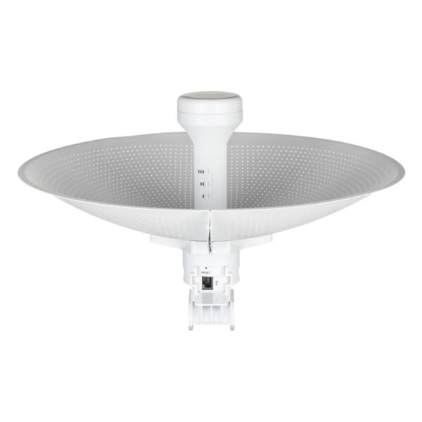 Características | General – Interfaces de dispositivo: 1 puerto Ethernet de 100/1000 Mbps, botón de reinicio – LED: Intensidad de la señal – Tipo de antena: Dish – Ganancia de la antena: 23 dBi – Ancho del haz: H: 10°, V: 10° – Estándares: 802.11a/n/ac – Protección: 8 kV Surge Protection – Carcasa: ABS, Conformidad con IP66 Funcionalidad – Modos de funcionamiento: AP, Station, WDS AP, WDS Station – Frecuencia operativa: 5180~5320 MHz, 5745~5825 MHz – Máx. Potencia de transmisión: 27 dBm – Velocidad Wi-Fi: Hasta 867 Mbps – Soporte de ancho de banda: 20/40/80 MHz – Distancia máxima de enlaces Bridging: Hasta 20 km (entre 2 x DAP-3712) Software – Configuración inalámbrica: Soporte de canal automático, selección de potencia de transmisión, activación/desactivación de la transmisión SSID – Seguridad: 802.11i 128-bit AES Personal / Empresa – Herramientas del sistema: Ping, traceroute, NTP, vigilancia de ping, syslog, analizador de espectro, pruebas de rendimiento (lperf ) – Tecnología inalámbrica inteligente: TDMA, Auto ACK, control de velocidad inteligente, prevención de interferencias de canal conjunto – Características avanzadas: Max. station limit – Tipo LAN: Estático, DHCP – Compatibilidad con VLAN: Sí – Firewall: Filtro IP / MAC – Monitores: Throughput, interfaces, tabla de rutas, tabla de puentes, tabla ARP, información de AP, syslog – Actualización de firmware: Actualización basada en web Características físicas – Entrada de alimentación (Inyector PoE incluido): PoE+ 48 V – Consumo de energía: ≤ 15 W – Temperatura operativa: -40ºC a 65ºC – Temperatura de almacenamiento: -40ºC a 85ºC – Humedad operativa: 0 % a 90 % – Humedad de almacenamiento: 0 % a 90 % – Peso: 900 g – Dimensiones: 372 x 372 x 241 mm – Certificaciones: CE, FCC |