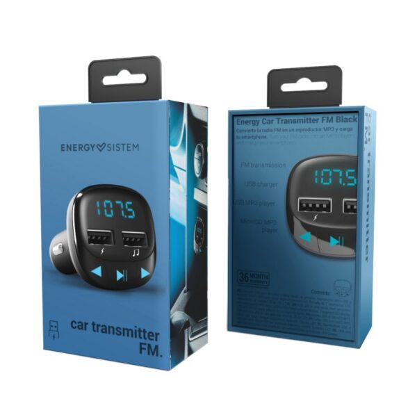 Características destacadas | – Transmisor FM que envía la música a la radio del coche sin necesidad de cables. – Conexión USB para escuchar música desde un pendrive (hasta 64 GB). – Recarga tu smartphone o tablet a través del cargador del coche, con la conexión de carga USB. – Compatible con tarjetas de memoria microSD (hasta 64 GB). – Pantalla para mostrar la información de la frecuencia seleccionada. |