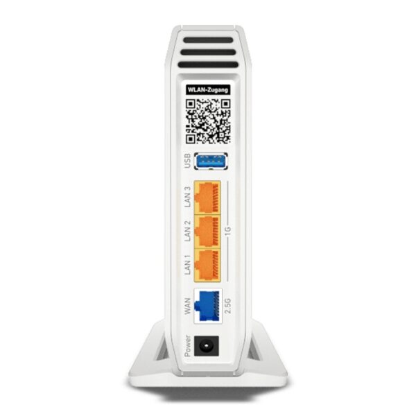 | Conexiones | – 1 puerto WAN Gigabit 2,5 (10/100/1000/2.5 GBase-T) – 3 puertos LAN Gigabit (10/100/1000 Base-T) – 1 puerto USB 3.0 para conectar un dispositivo de almacenamiento, una impresora o un módem USB – Punto de acceso inalámbrico IEEE 802.11ax, ac, n, g, a – Base DECT hasta para seis teléfonos |