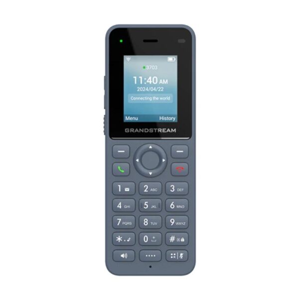 | Características | – 3 cuentas SIP, 3 líneas – Diseño de voz HD y micrófono dual con tecnología AEC y Noise Shield – Botón configurable para pulsar para hablar – Puerto USB tipo C (admite carga rápida) – Acelerómetro, botón de emergencia (pendiente) – Capacidad de la batería: Batería recargable Iones de litio de 3000 mAh – Duración de la batería: 12 horas de conversación 240 horas en espera – Bluetooth – Wi-Fi 6 802.11 a/b/g/n/ac/ax (2,4 GHz y 5 GHz) integrado de doble banda, compatible con 802.11k/r/v [WEP, WPA, WPA2, WPA3 (personal)] – Gestión de dispositivos: GDMS |