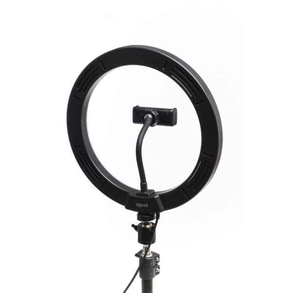 En ese caso, ¡necesitas una buena iluminación que saque lo mejor de ti! ¡Lúcete con el anillo LED de 25 cm de diámetro de iggual! Ofrece 10 niveles de intensidad y 3 temperaturas de color, es decir, 3 niveles de blanco: cálido (con un toque amarillento), neutro (blanco puro) y frío (con un toque azulado). Pruébalos todos con el cómodo mando integrado en el cable. Sea como sea, el éxito de una perfecta iluminación está asegurado.