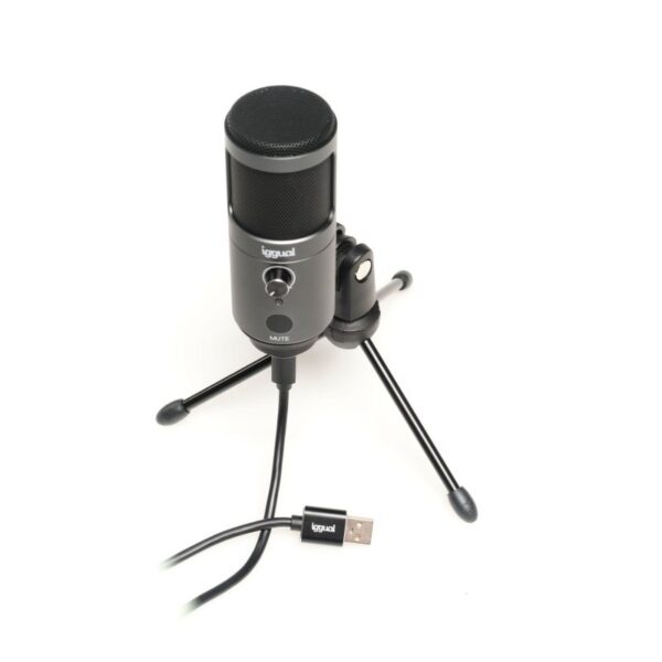 | Características | – Micrófono de condensador de 16 mm de diámetro – Patrón polar: cardioide – Directividad: unidireccional (forma de corazón) – Frecuencia de respuesta: 25 Hz ~ 20 kHz – Tasa de muestreo: 48 kHz – Tasa de bits: 24 bit – Sensibilidad: -43 ± 3 dB – SNR: 75 dB – Ruido equivalente: 19 dBA – Nivel de presión sonora (SPL): 120 dB (a 1 kHz a ≤ 1% T.H.D.) – Interfaz de conexión: USB – Voltaje: DC 5V – Corriente eléctrica: 110 mA – Longitud del cable: 2 m – Materiales: aleación de aluminio (cuerpo), acero inoxidable (malla) – Rueda de control de volumen (MIC) – Botón para silenciar (MUTE) / Indicador LED – Enchufar y listo (Plug & Play) – Soporta: Windows, macOS, Android, PS4, PS5 Contenido de la caja: – 1 x micrófono USB con montura basculante – 1 x cable USB de 2 m (tipo B – tipo A) – 1 x mini trípode de metal – 1 x manual de uso |