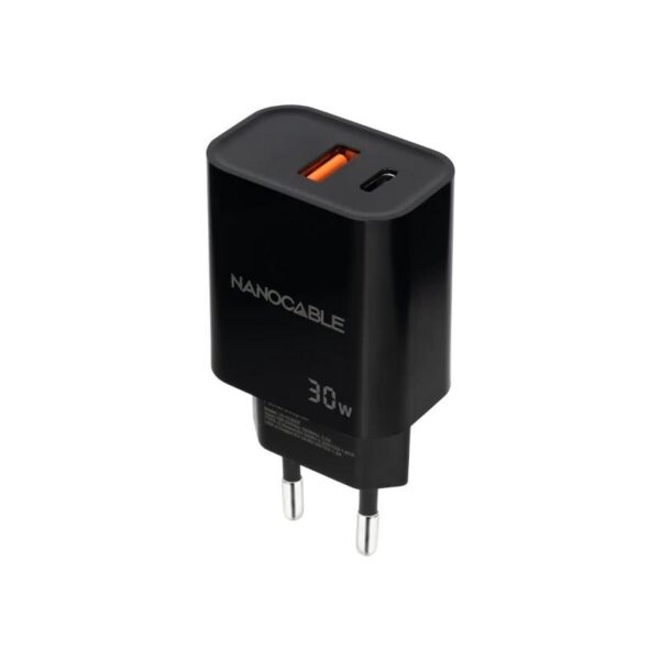 Nanocable Cargador USB-C/PD+USB-A/QC 30W Negro
