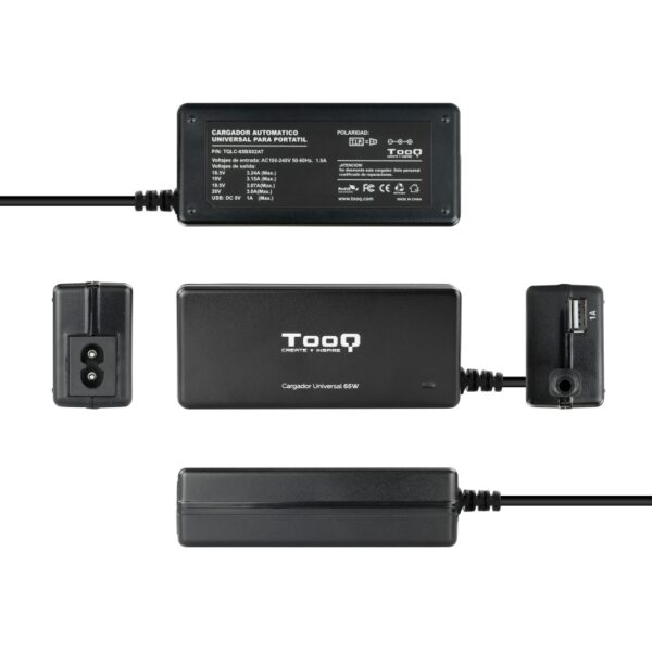 Cargador automático Universal multi tensión para portátil 65W con 1xUSB y 8 conectores