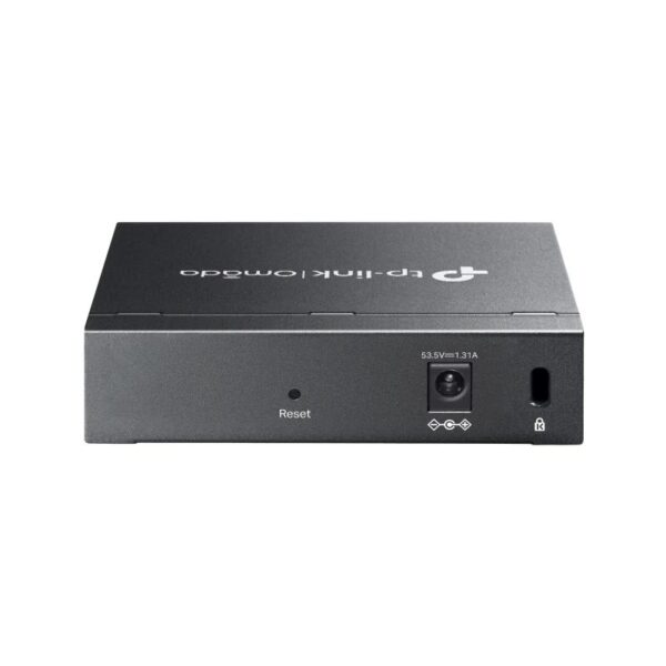 Características de Hardware | – Interfaz: 5 × 10/100/1000 Mbps RJ45 Ports (Ports 1–4 Support 802.3af PoE and 802.3at PoE+) Auto-Negotiation/Auto MDI/MDIX – Gabinete de ventilador: Sin ventilador – Instalación: Escritorio Montaje en pared – Bloque de seguridad física – Fuente de Alimentación: Adaptador de corriente CC (Salida: 53,5 V CC/1,31 A) – Puertos PoE (RJ45): Estándar: compatible con 802.3af PoE y 802.3at PoE+ Puertos PoE: 4 puertos Presupuesto PoE: 65 W disponibles para todos los puertos PoE+, 30 W máximo por puerto Recuperación automática de PoE‡ Distancia de transmisión PoE de hasta 250 m** – Protección contra sobretensiones: ±6 kV |