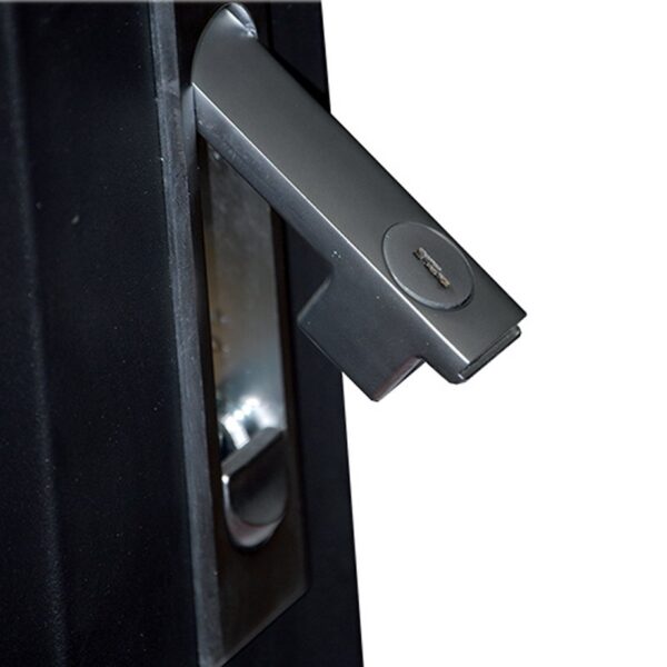 La puerta de cristal templado, el armazón de acero de 2 mm, los cierres (también en los paneles laterales desmontables), las 4 ruedas y las 4 patas de nivelación convierten esta serie en una solución sencilla y con todo lo necesario para su instalación.
