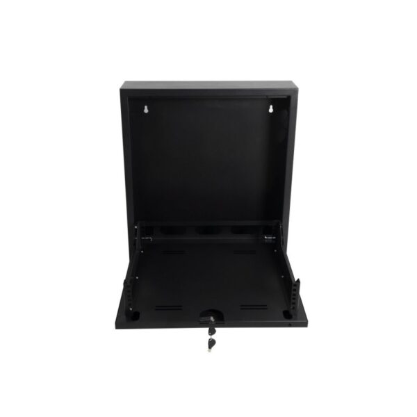 Características | – Estructura en acero macizo de 1,5 mm – Predisposición para dos ventiladores de 120 mm a los lados – Predisposición para el microcontacto integrado Cooper CSA Serie 314 en la puerta para la conexión al sistema de alarma – Soportes extraíbles estándar de rack de 19" con 2 unidades (2 frontales + 2 traseros) fijados a la puerta – Cierre con una llave de seguridad tubular numerada diferente para cada armario – Compartimento inferior que solo se puede abrir desde el interior para la gestión de la conexión – Orificios de entrada de cable en la parte inferior – Dimensiones: 75Hx60Lx15P cm – Peso: 18 Kg – Color: Negro RAL 9005 |
